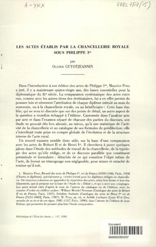Les Actes établis par la chancellerie royale sous Philippe Ier