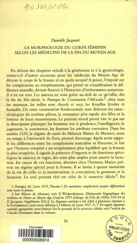 La morphologie du corps féminin selon les médecins de la fin du Moyen âge