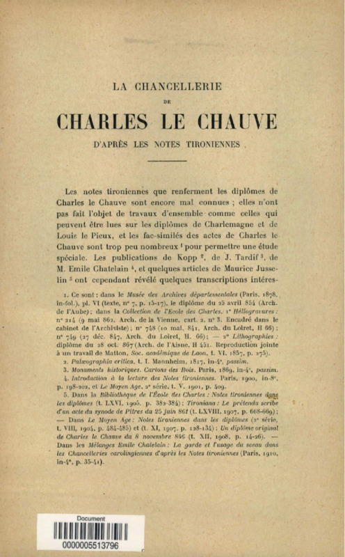 La chancellerie de Charles le Chauve d'après les notes tironiennes