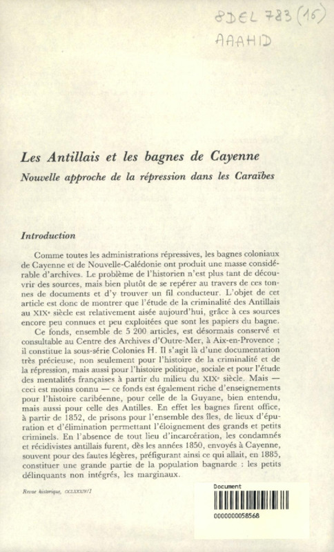 Les Antillais et les bagnes de Cayenne : nouvelle approche de la répression dans les Caraïbes