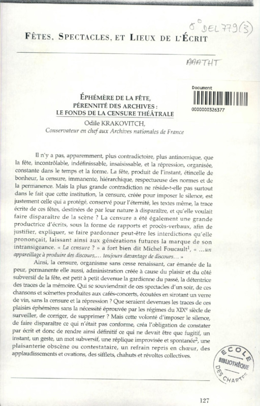 Ephémère de la fête, pérennité des archives : le fonds de la censure théatrale