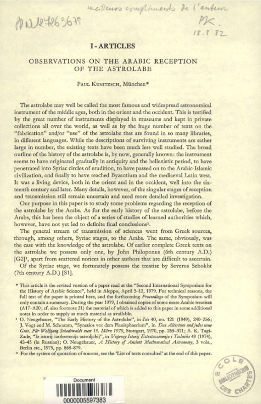 Sujet : Astronomie médiévale Astrologie arabe Astronomie arabe
