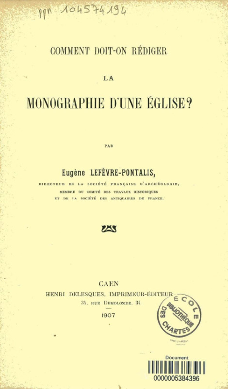 Comment doit-on rédiger la monographie d'une église?