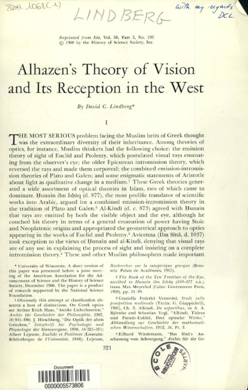 The Theory of Pinbole Images from Antiquity to the Thirteenth Century
