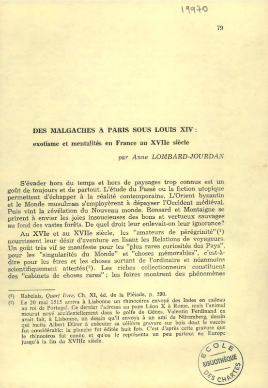 Des Malgaches à Paris sous Louis XIV : exotisme et mentalités en France au XVIIe siècle