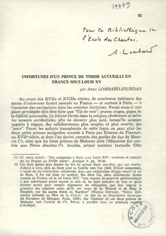 Une description inédite des Iles Comores (1743)