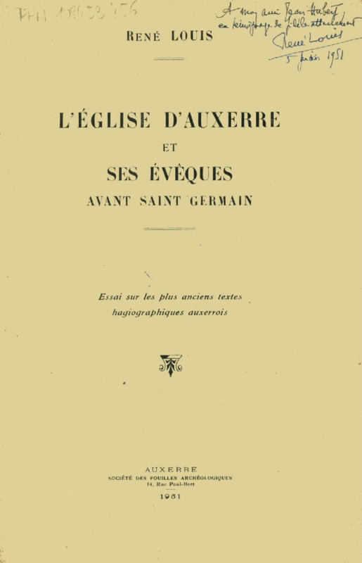 L'église d'Auxerre et ses évêques avant Saint Gemain : essai sur les plus anciens textes hagiographiques auxerrois
