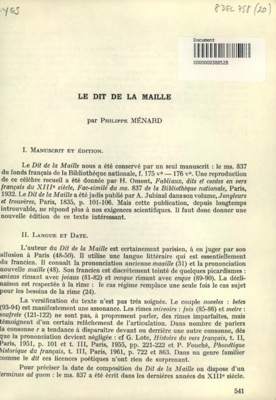 Le Dit de la maille