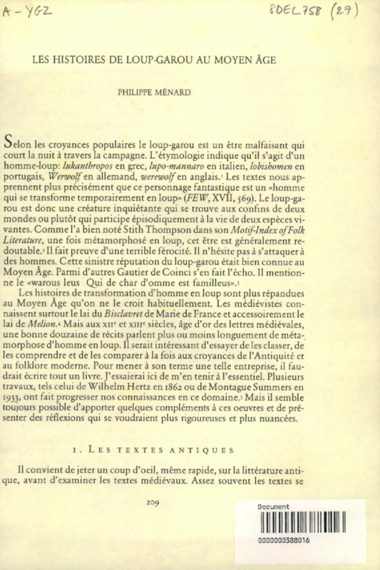 Les histoires de loup-garou au Moyen Age