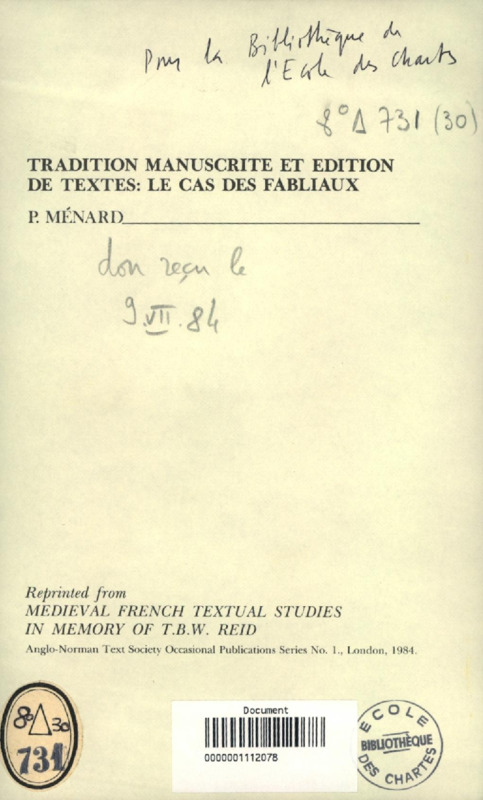 Tradition manuscrite et édition de textes : le cas des fabliaux