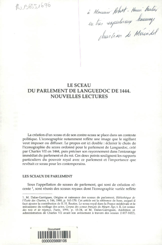 Le sceau du Parlement de Languedoc de 1444 : Nouvelles lectures