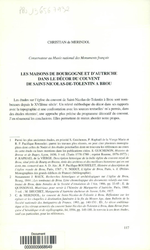 Les maisons de Bourgogne et d'Autriche dans le décor du couvent de Saint-Nicolas-de-Tolentin à Brou