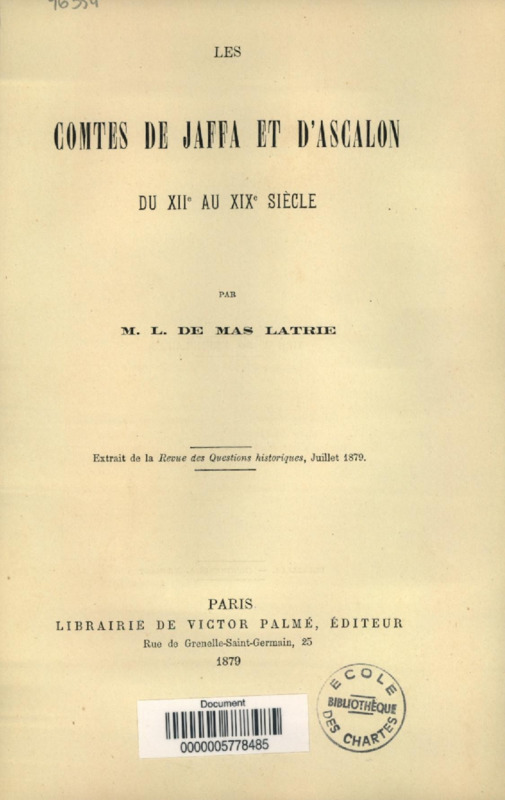Les Comtes de Jaffa et d'Ascalon du XIIe au XIXe siècle