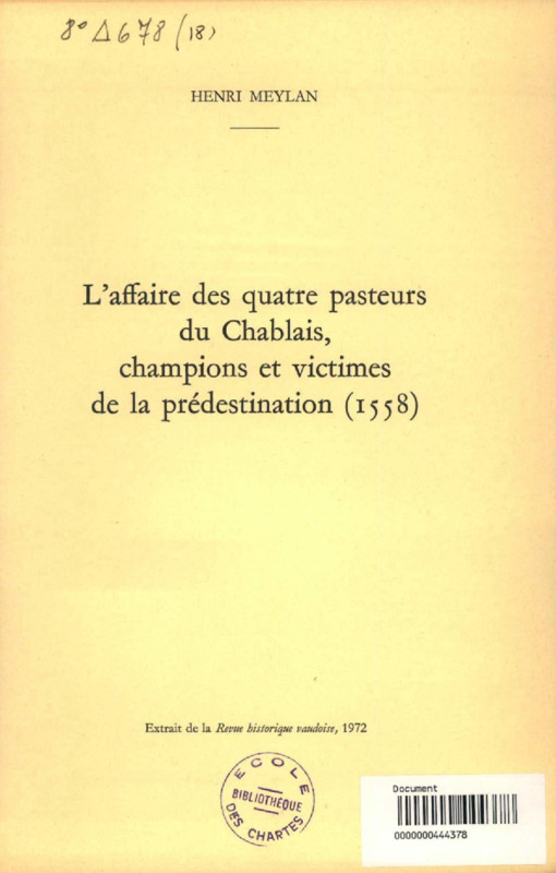 L'affaire des quatre pasteurs du Chablais, champions et victimes de la prédestination (1558)