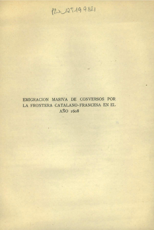 Emigracion masiva de conversos por la frontera catalano-francesa en el ano 1608