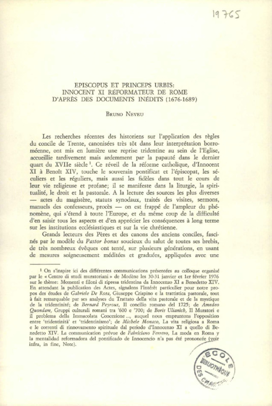 Episcopus et princeps urbis : Innocent XI réformateur de Rome d'après des documents inédits (1676-1689)