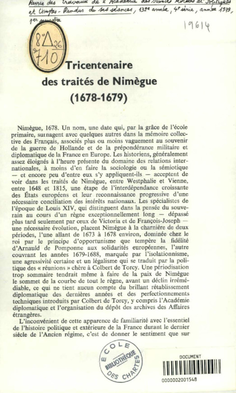 Tricentenaire des traités de Nimègue (1678-1679)