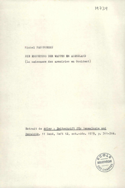 Die Entstehung der Wappen im Abendland : der heutige Stand der Forschung