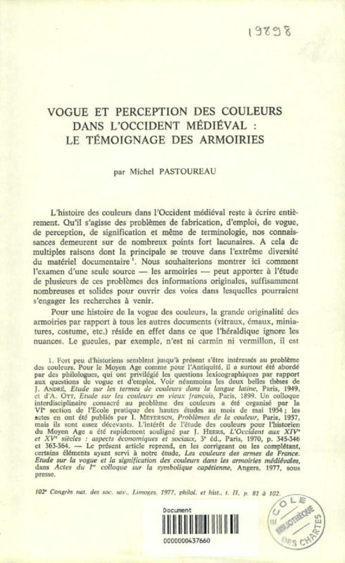 Vogue et perception des couleurs dans l'Occident médiéval : le témoignage des armoiries
