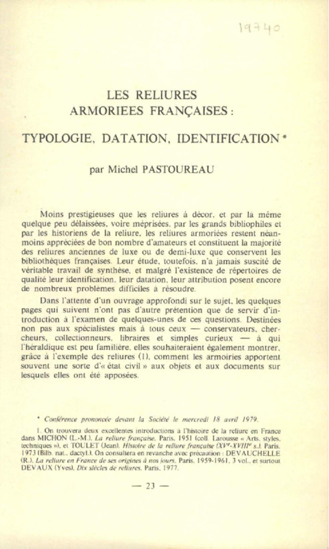 Les reliures armoriées françaises : typologie, datation, attribution