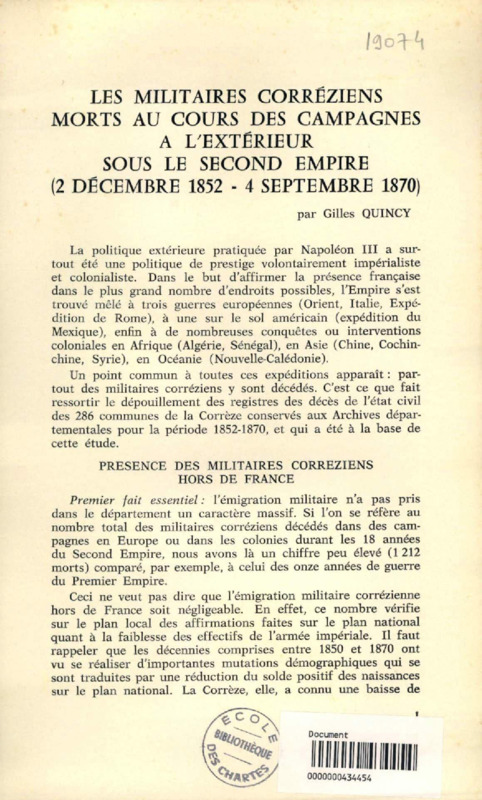 Les militaires corréziens morts au cour des campagnes à l'extérieur sous le Second Empire (2 décembre 1852 - 4 septembre 1870