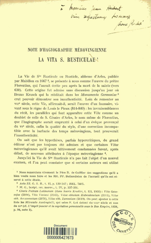 Note d'hagiographie mérovingienne : La Vita. S. Rusticulae