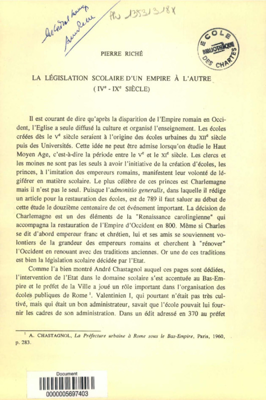 La législation scolaire d'un Empire à l'autre, IVe-IXe siècle