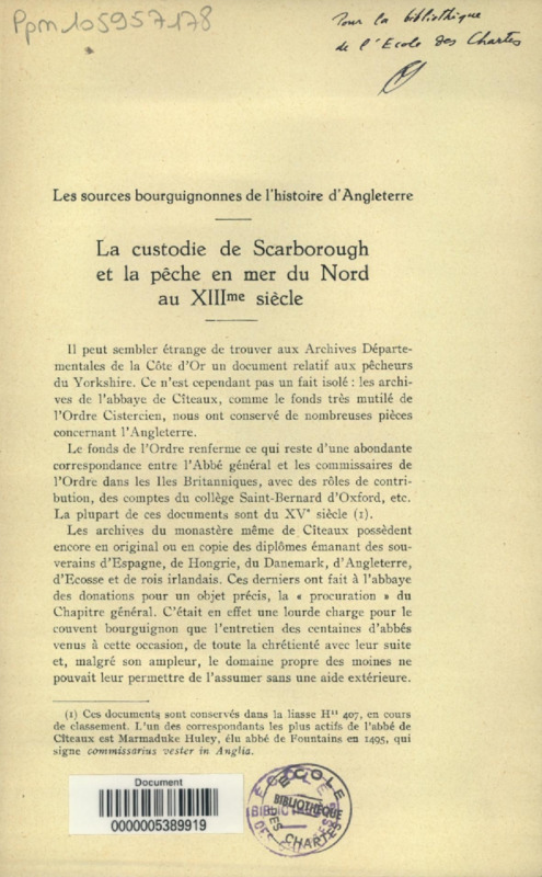 Les sources bourguignonnes de l'histoire d'Angleterre : la custodie de Scarborough et la pêche en mer du Nord au XIIIme siècle