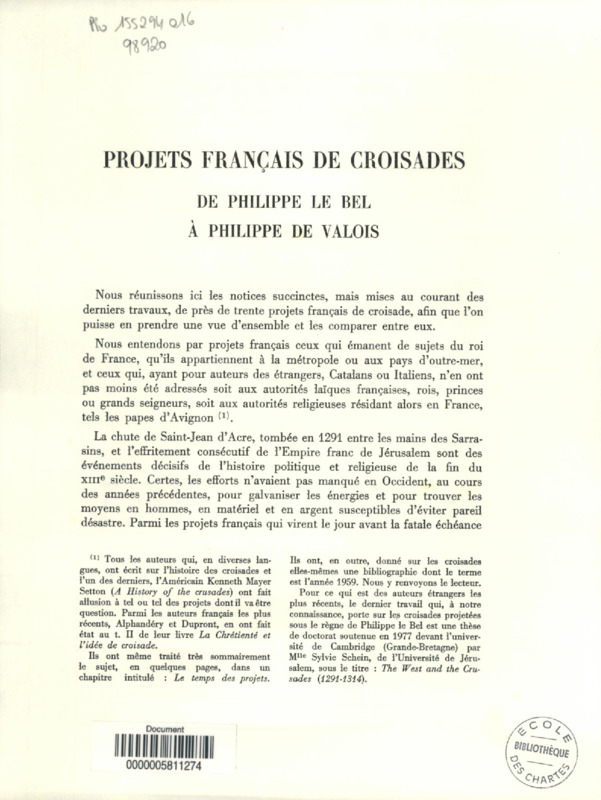 Projets français de croisades, de Philippe Le Bel à Philippe de Valois