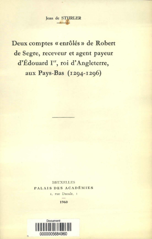 Deux comptes "enrôlés" de Robert de Segre; receveur et agent payeur d'Edouard Ier, roi d'Angleterre, aux Pays-Bas, 1294-1296