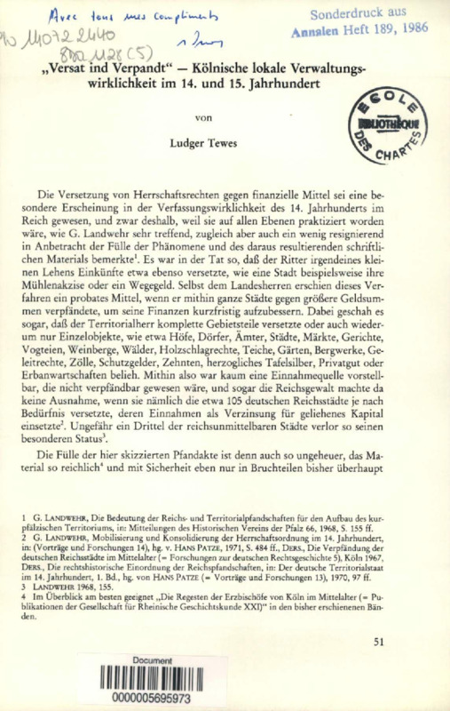 "Versat ind Verpandt"- Kölnische lokale Verwaltungswirklichkeit im 14. und 15.Jahrhundert
