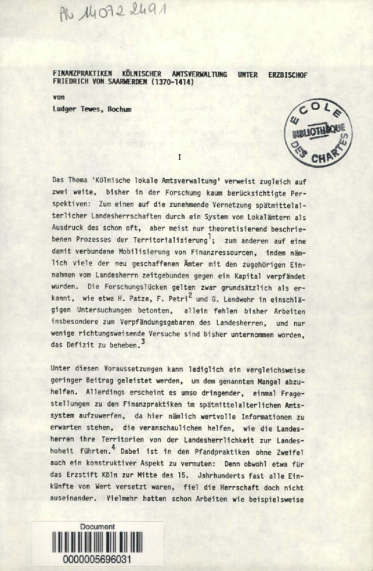 Finanzpraktiken Kölnischer Amtsverwaltung unter Erzbischof Friedrich von Saarwerden, 1370-1414