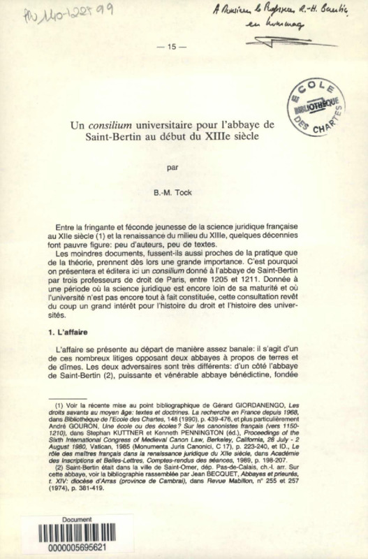 Un Consilium universitaire pour l'abbaye de Saint-Bertin au début du XIIIe siècle