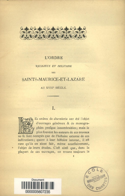 Une réception dans l'ordre religieux et militaire des Saints-Maurice-et-Lazare de Savoie au XVIIIe siècle : étude sur des documents inédits