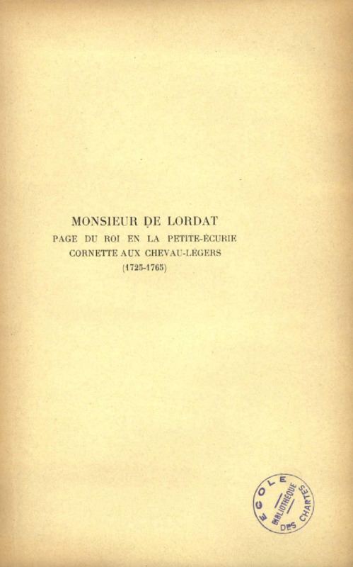 Monsieur de Lordat, page du Roi en la Petite-Ecurie cornette aux Chevau-légers (1725-1765)