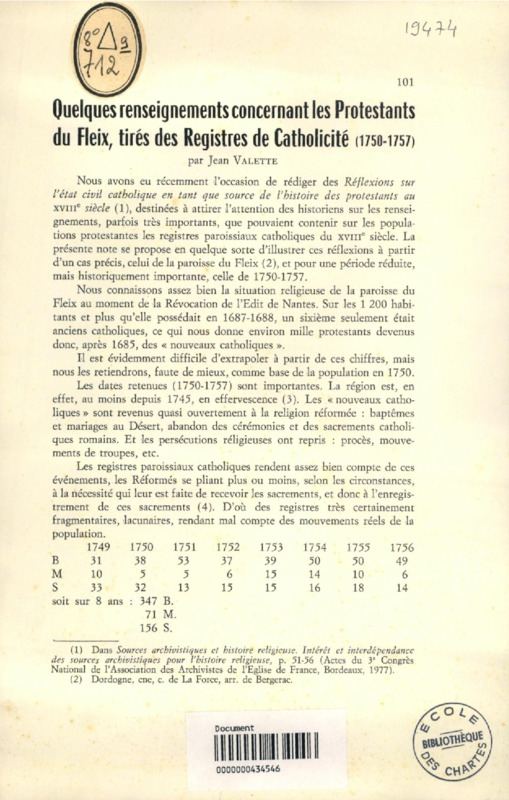 Quelques renseignements concernant les protestants du Fleix, tirés des registres de catholicité (1750-1757)