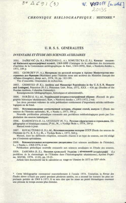 Chronique bibliographique : histoire U.R.S.S. généralités