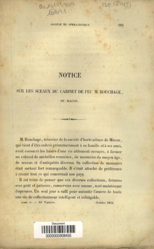 Notice sur les sceaux du cabinet de feu M.Bouchage, de Mâcon