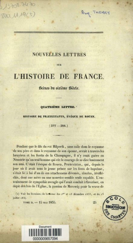 Nouvelles lettres sur l'histoire de France : Scènes du sixième siècle