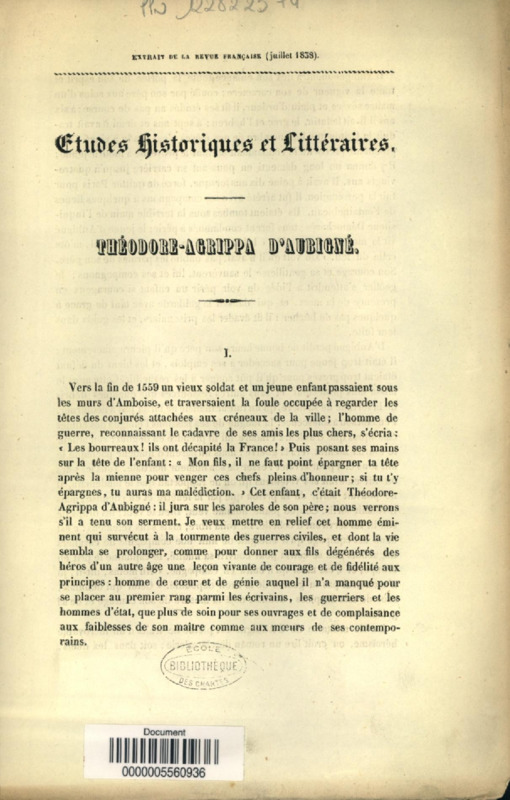 Etudes historiques et littéraires : Théodore-Agrippa d'Aubigné