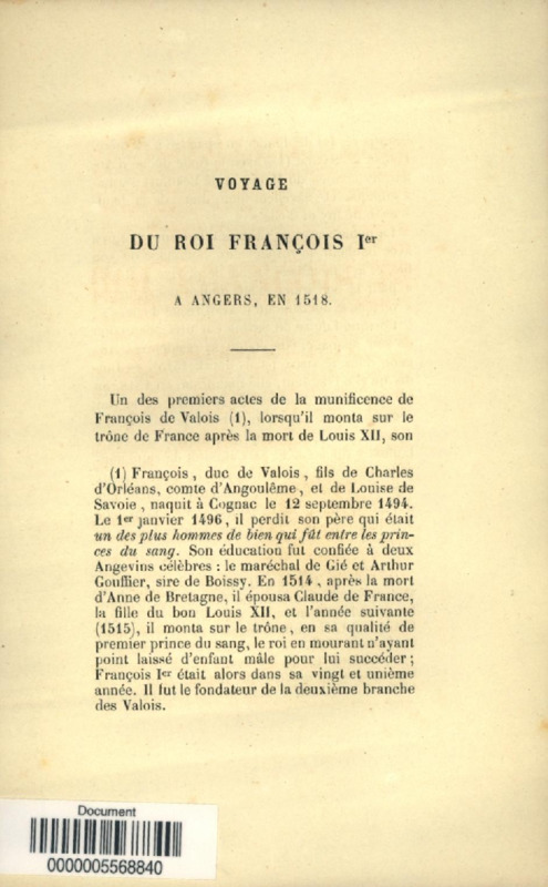Voyage du roi François Ier à Angers, en 1518