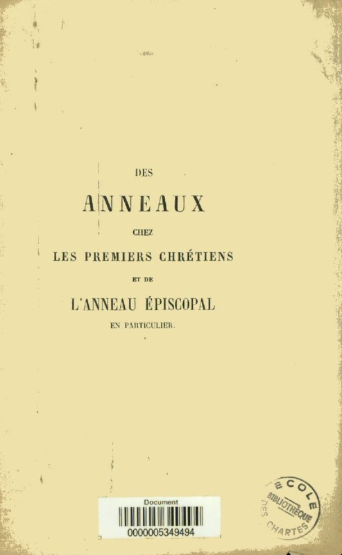 Des anneaux chez les premiers chrétiens et de l'anneau épiscopal en particulier