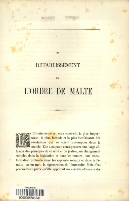 Du Rétablissement de l'Ordre de Malte