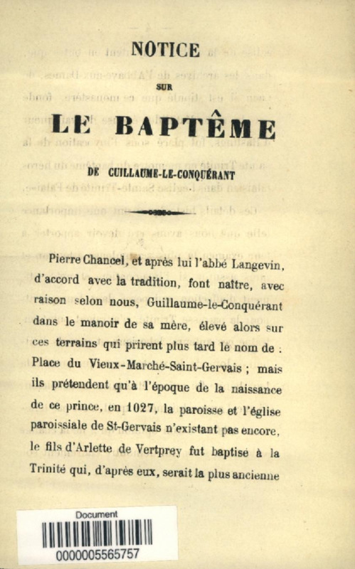 Notice sur le baptême de Guillaume-le-Conquérant