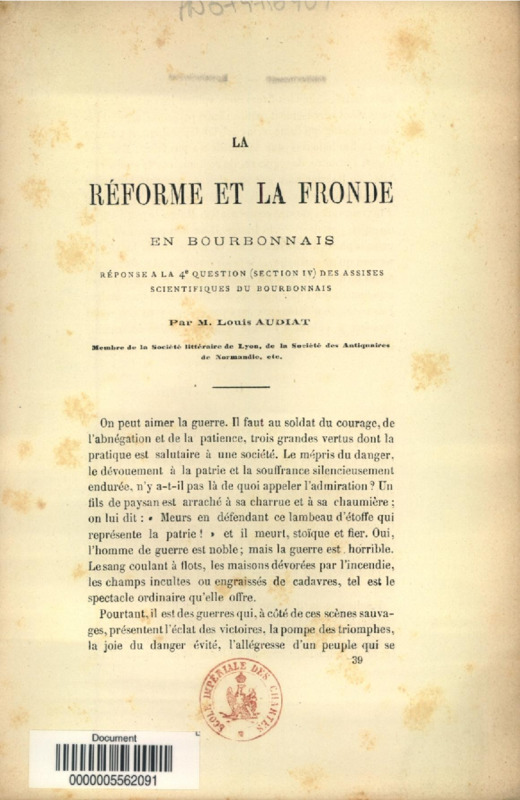 La Réforme et la Fronde en Bourbonnais