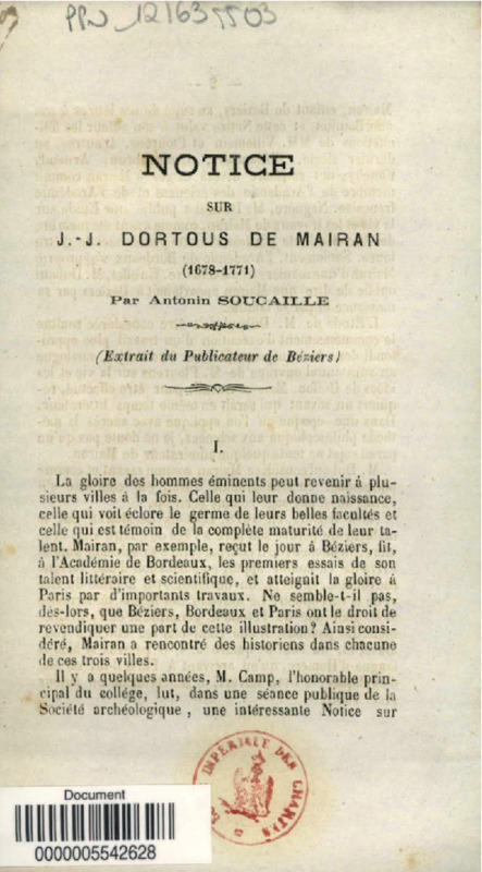 Notice sur J.J.Dormous de Mairan : 1678-1771