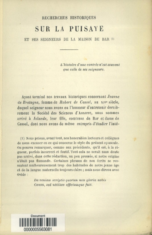 Recherches historiques sur La Puisaye, Saint-Fargeau, Toucy en Auxerrois, et leurs seigneurs de la maison de Bar : XIIIe, XIVe et XVe siècles