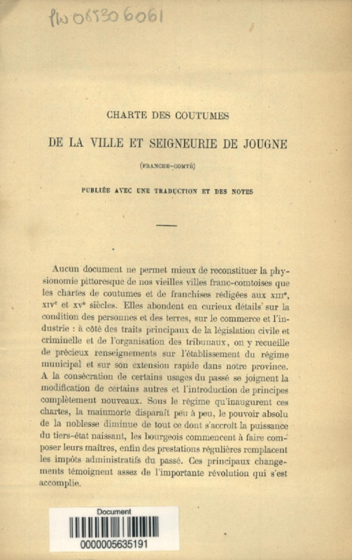 Charte des coutumes de la ville et seigneurie de Jougne, Franche-Comté