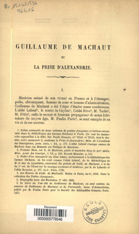 Guillaume de Machaut et la prise d'Alexandrie