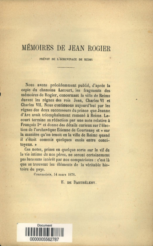 Mémoires de Jean Rogier,... : notes diverses